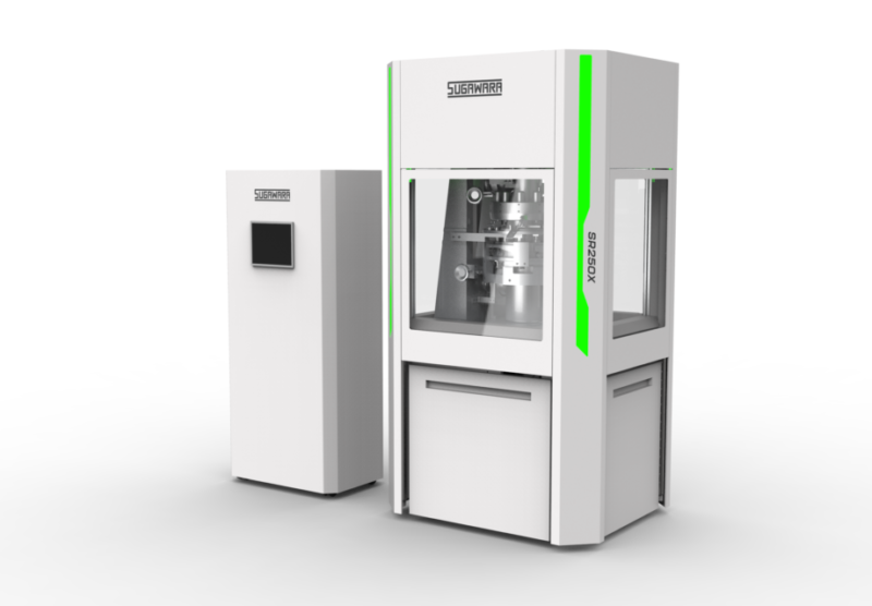 金属やセラミックなどの粉末を金型に入れ、高圧をかけることにより圧縮・成形する装置