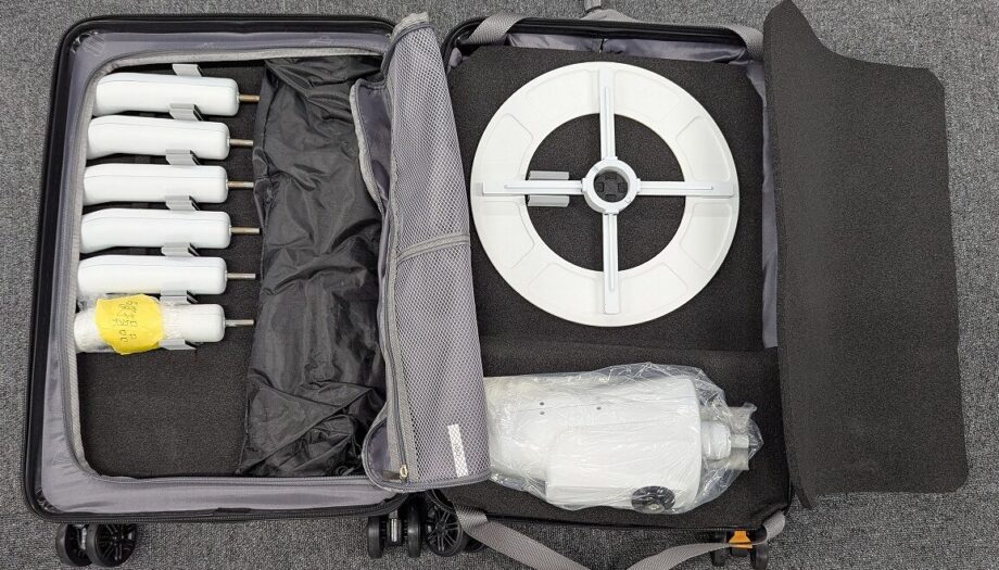 展示会での持ち運びを考慮し、スーツケースに収まるコンパクトサイズに設計。