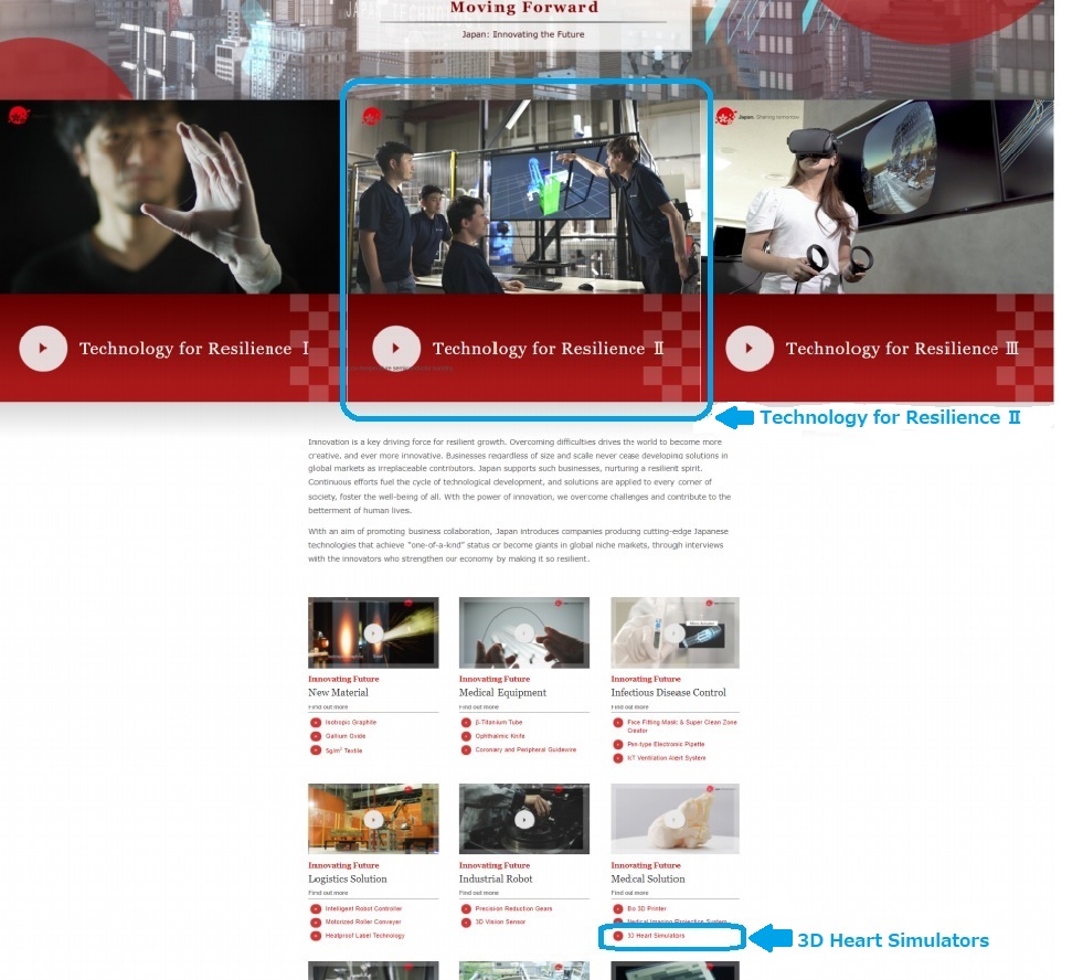2020.10.31WEB内閣府の国際広報WEBサイトに、クロスメディカルが紹介されました媒体名内閣府国際広報WEBサイト掲載日2020年10月この度、内閣府の国際広報WEBサイトにクロスメディカルの心臓モデルが紹介されました。 代表の竹田のインタビュー映像も掲載されています。ぜひご覧ください。 ◆内閣府の国際広報WEBサイトのトップページはこちら ◆Moving Forward: Technology for Resilience Ⅱの動画はこちら ◆クロスメディカルの単独動画はこちら